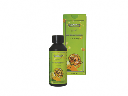 Bio Bloombastic è il nuovo stimolatore di fioritura della Atami completamente organico ma efficiente quanto il Bloombasic: oltre che essere un prodotto stimolante della fioritura in generale apporta grosse dosi di fosforo e potassio (non di estrazione minerale) fondamentali per dare compattezza e peso ai frutti del vostro giardino. Infatti ha un tenore NPK 0-9-12, con contenuto di ossido di potassio, ossido di calcio e di magnesio, ferro, manganese, zinco e boro in forma chelata EDTA, e derivati della melassa. Ideale per indoor e outdoor è un ottimo compromesso per chi vuole un prodotto organico che spinga la fioritura ai massimi livelli. Ottimo per coltivazioni in terriccio e fibra di cocco, non adatto a sistemi di irrigazione e sistemi idroponici a causa della sua alta densità.